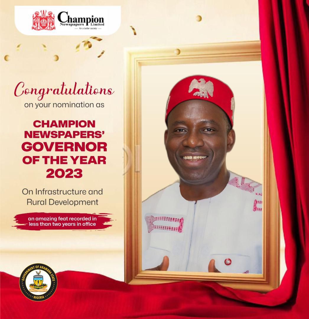 The Champion Newspapers have rightfully nominated Chukwuma Soludo, the Governor of Anambra State, for the distinguished “2023 Governor of the Year in Infrastructure and Rural Development” award. It is an undeniable recognition of the governor’s stellar performance in delivering top-quality infrastructure in an incredibly short time without borrowing. Soludo will be honored at the Convention Center of the Eko Hotels and Suites in Lagos on Saturday, May 25, making history as the first-ever Anambra State Governor to receive a coveted title of champion in less than two years in office. The annual Champion Newspapers Awards aim to celebrate contributions to nation-building, and Soludo’s accomplishments are nothing short of remarkable.