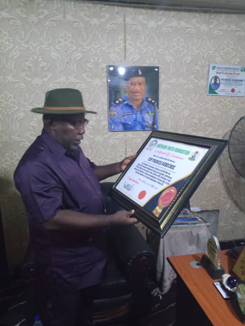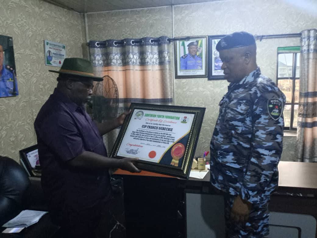 The Southern Youth Foundation of Nigeria has honoured the Divisional Police Officer (DPO) of Mile One Diobu Division, CSP Francis Ogbechie, in recognition of his contributions to effective policing and peaceful coexistence in Rivers State.