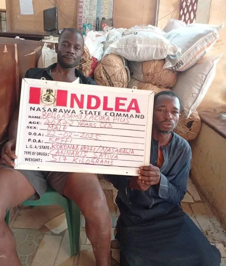 In Nasarawa state, NDLEA operatives on Saturday 22nd February arrested two suspects: Bello Adamu, 40, and Pius Azuka, 42 at Kokona/Keffi with 517kg of skunk, while two other suspects: Usman Ruwa, 43, and Yunusa Haruna, 45, were nabbed in a Toyota Corolla car conveying 62.7 kilograms of skunk along Sabon Asibiti road Kontagora, Niger state on Thursday 20th February.