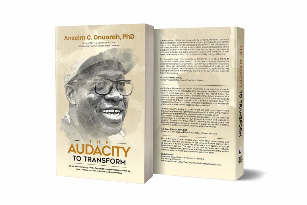 It is therefore, heartening to acknowledge the efforts of Dr Anselm Onuoha, a scholar and former Local Government administrator, who has taken the gauntlet to capture Soludo’s stewardship so far, in office in a book aptly titled: *THE AUDACITY TO TRANSFORM:*