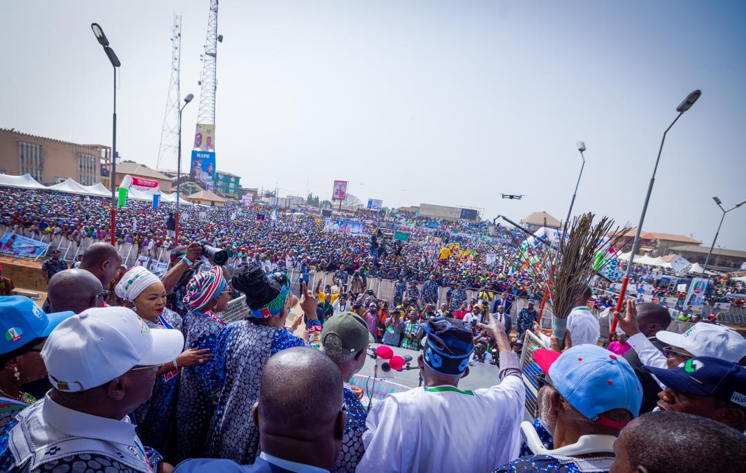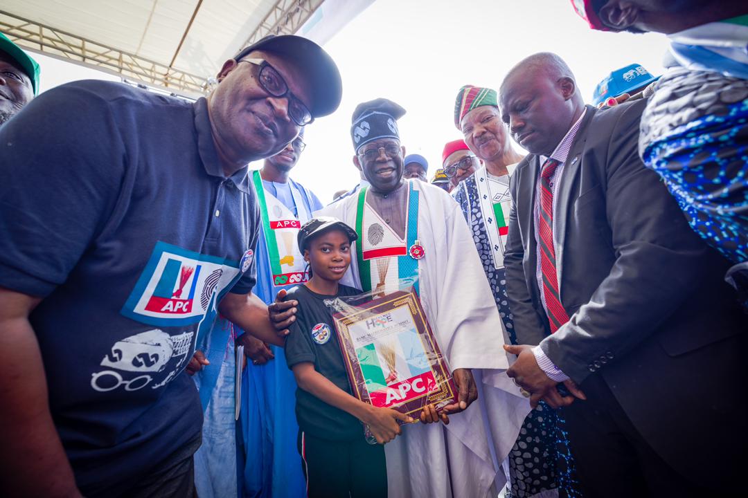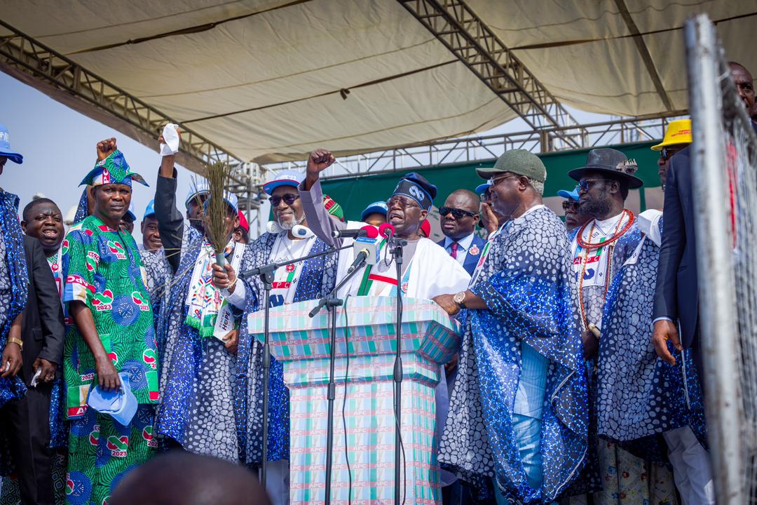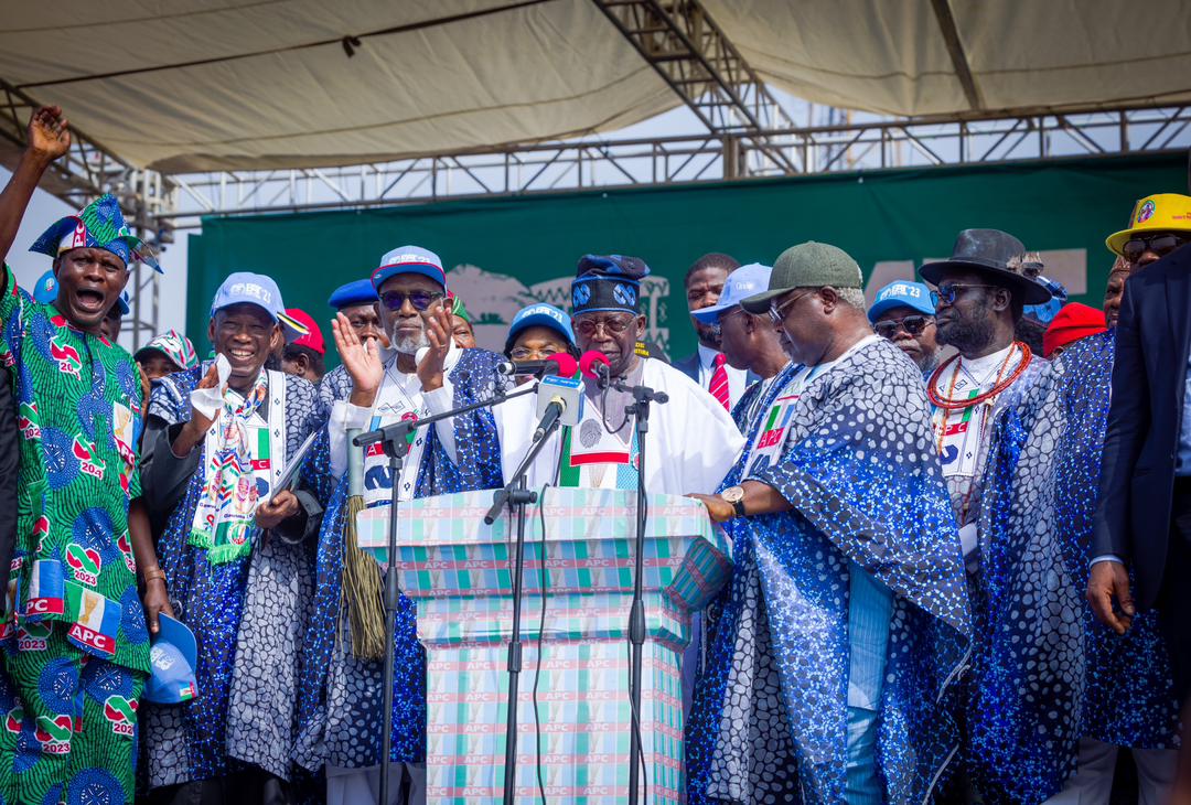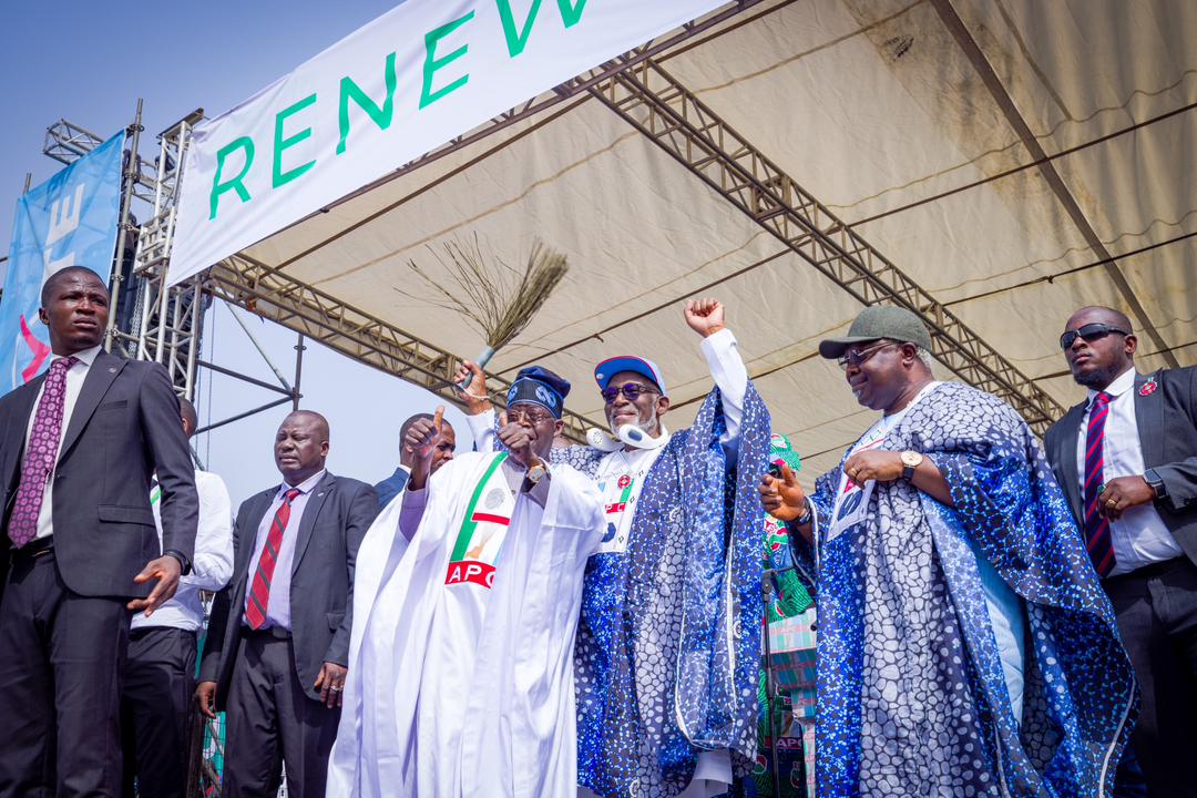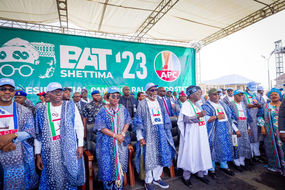 The rally, which attracted a mammoth crowd was attended among others by Governors Oluwarotimi Akeredolu (Ondo), Babajide Sanwo-olu (Lagos), Dapo Abiodun (Ogun), Abdullahi Ganduje (Kano), former Osun State governor, Gboyega Oyetola, and APC National Secretary Senator Iyiola Omisore who represented National Chairman Senator Abdullahi Adamu.