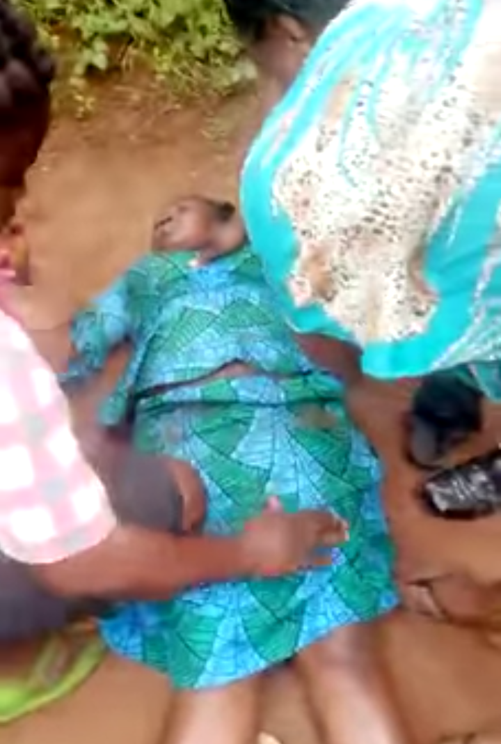 A video from the scene currently trending online showed the woman lying unconscious on the ground, while villagers gathered to sympathize with her.