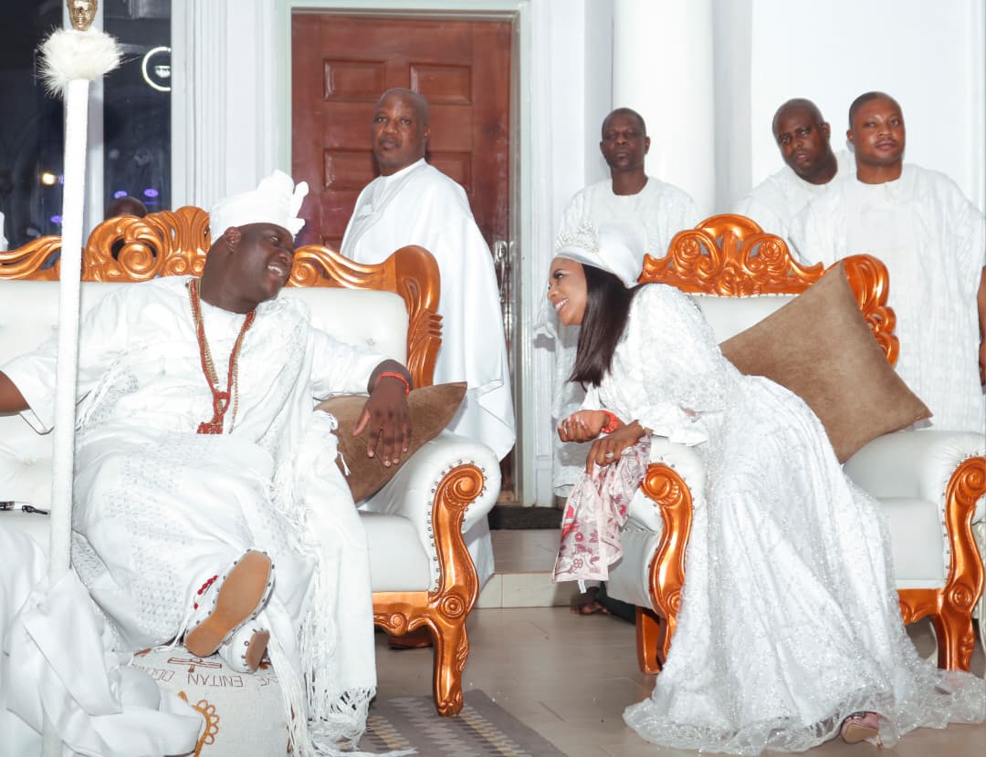 His Imperial Majesty Ooni Adeyeye Babatunde Enitan Ogunwusi, Ojaja II (left) with Her Regal Majesty, Olori Amb. Dr. Temitope Enitan-Ogunwusi